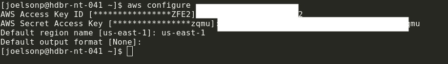 Após instalar o AWS CLI, execute ‘aws configure’ e insira as credenciais do usuário da conta AWS.
