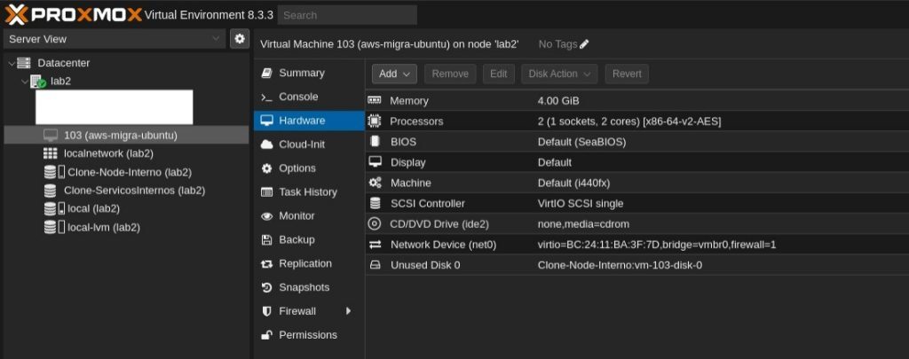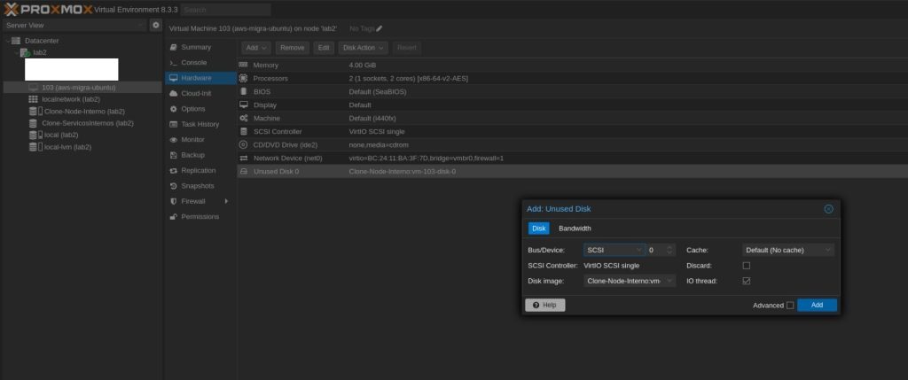 unused0: successfully imported disk 'Clone-Node-Interno:vm-103-disk-0'